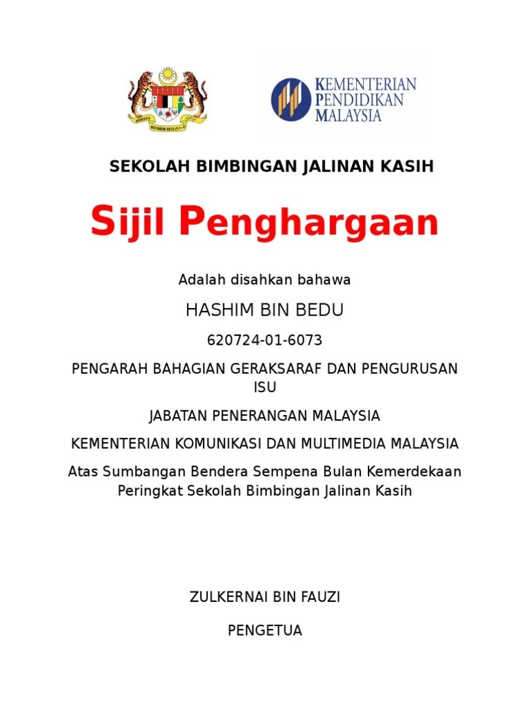 Percuma 11 template sijil penyertaan penghargaan pemenang . Sekolah menengah kementerian pelajaran jalan menara 123456 kuala lumpur sijil penghargaan adalah dengan ini diperakukan bahawa telah memberi sumbangan dan .